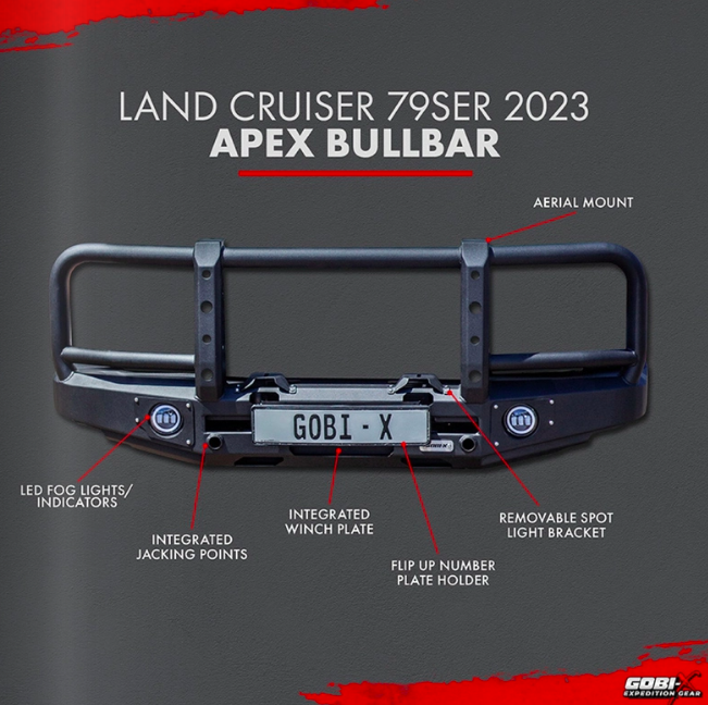 Ensuring better visibility at night or during foggy conditions the Gobi-X range of front bumpers are either supplied with aftermarket integrated fog lights or in some cases use the original OE fog lights.